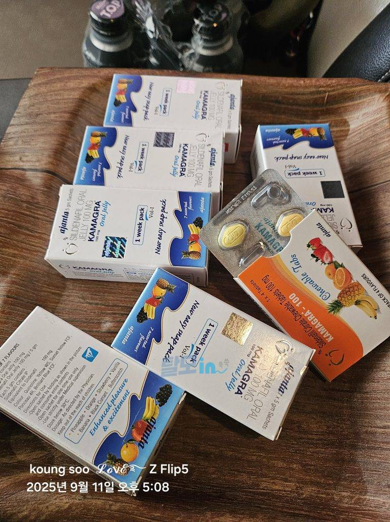 • 카마그라 골드(정제): 가장 기본적인 알약 형태로, 1정(100mg)씩 포장되어 있습니다. 물과 함께 복용합니다.