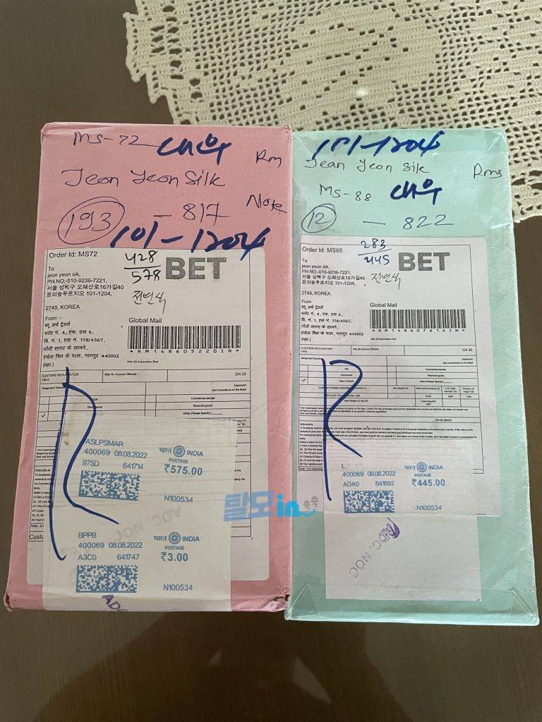 배송 : 인도 → 한국